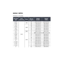 BARRAS ROSCADAS POLIDAS E ZINCADAS 1M X 5/32”